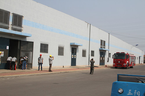 本次事故应急预案假设精纺三车间1号变压器发生电器火警。整个演练过程紧张有序,各部门协作配合到位,安环部的组织能力、指挥能力、应变能力也得到了锻炼。通过事故演练进一步强化了员工的安全意识,切实增强员工的自救、互救能力。同时,检验了消防预案的可行性、可操作性,检验了消防应急装备、物资的完整好用。本次演练取得圆满成功,得到了开发区安监局领导的高度评价。