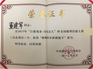 近日,公司组织企业员工参加2017年“白鲨境泉-青岛宏大”杯全国梳理技能大赛(山东赛区),经过激烈角逐,我公司获得“优秀组织奖”称号,我公司员工李永生、董建军荣获“梳棉技术拼搏能手”称号。本次大赛是对我公司员工操作技能水平的检验,同时也是我公司员工践行“工匠精神”,对自身技能精益求精,勤学苦练的结果。