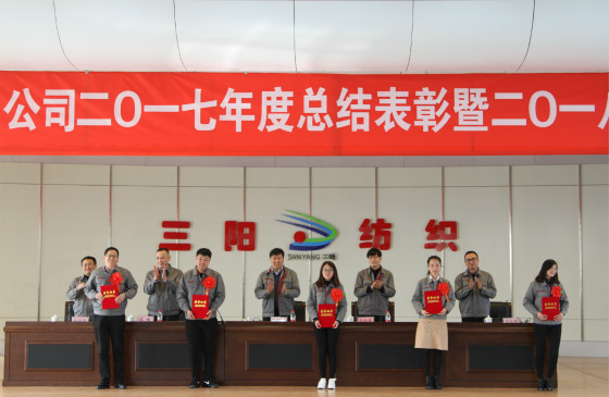 2月9日,三阳纺织有限公司二〇一七年度总结表彰暨二〇一八年工作会议在公司文化中心二楼多功能厅隆重召开,公司董事长兼总经理张尧宗发表重要讲话,副总经理刘虎城主持会议,副总经理孟刚宣读表彰决定并在主席台就坐。在主席台就坐的公司领导还有:公司副总经理李大松、公司副总经理徐西国。公司中基层管理人员、部分职工代表、企业标兵、先进个人、优秀管理者、先进集体代表共776人参加了会议。