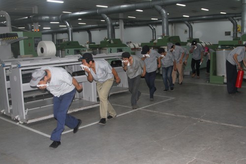 本次演练以精纺公司一车间细纱车间细纱机出现火警事故为具体方案。在演练过程中,严格按照公司灭火应急预案程序进行。整个演练过程组织周密、环节紧凑、系统性强,是公司消防安全应对突发性事件在组织、协调、指挥、灭火、疏散、救援等方面的一次全面锻炼。