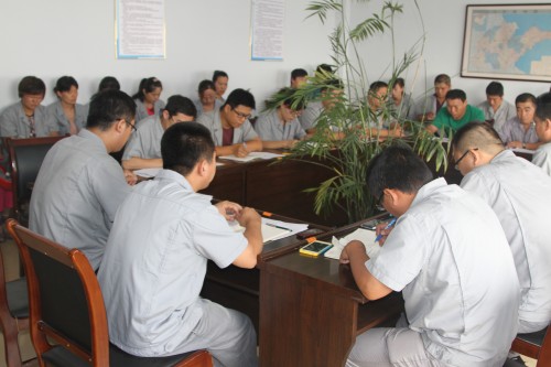 7月29日上午8:00,各车间实验室组长及物资部基层管理人员到力能热电学习班组管理经验。