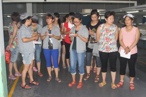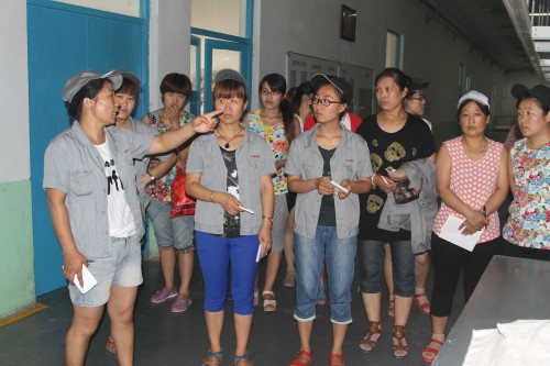 7月29日上午9:00,精纺公司一车间组织部分班长到织造公司整理车间向工序主任贾登霞学习班组管理经验。