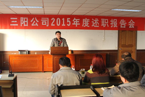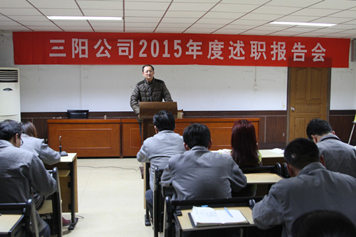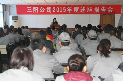 1月8日,由公司人力资源部组织的公司2015年度述职报告会在技术中心二楼会议室举行,公司总经理徐建民、财务总监张尧宗、技术总监刘虎城、工会主席李小兵参加了本次述职会。