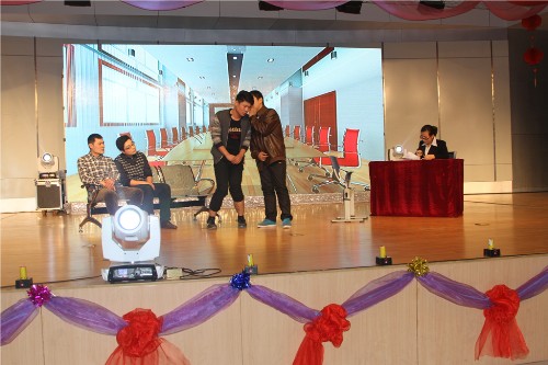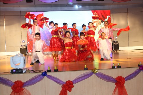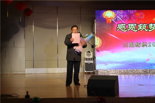 2014年12月30日晚18:30,由公司工会举办,以“感恩筑梦,携手同舟”为主题的2015年元旦晚会在公司文化中心举行。公司工会主席、行政总监陈建华为晚会致词,陈总代表公司向全体员工表示感谢的同时,送上了最美好的祝福。陈总希望全体员工在新的一年里,同心同德、艰苦奋斗,以饱满的热情、认真的态度,共同创造三阳公司更加美好的明天!