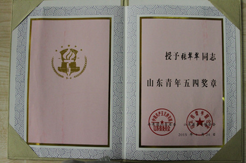 5月4日上午,山东省纪念五四运动96周年座谈会在济南举行,在会上,我公司张翠翠同志荣获“第19届山东青年五四奖章”荣誉称号。