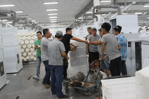 本次活动的目的是使营销、生产两大系统形成统一、明确的目标,本次活动分两部分:一是召开融合沟通会议。在会上,两大系统针对工作配合中的不足展开讨论,在整个沟通过程中气氛非常融洽,直至双方开诚布公的说出各自的心里话。二是营销人员进入生产一线开展“送清凉”活动。营销人员分别走入精纺四个车间、天丰公司为一线员工送去雪糕。在营销人员进入一线为工作中的员工送上一支雪糕加上一句“辛苦了”时,员工感受到的不仅仅是一丝清凉,而是公司大家庭的关心、关爱。当一线员工接过雪糕时说出的一句“谢谢”,无形中拉近了双方的距离。深入一线与员工的融合,将本次融合活动推向高潮。