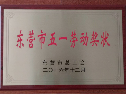 在市总工会开展的“推行协商民主、强化社会责任”工作品牌创建活动中,我公司被东营市总工会分别授予“东营市推行协商民主强化社会责任先进单位”、东营市“五一”劳动奖状荣誉称号。公司代总经理张尧宗荣获东营市“五一”劳动奖章荣誉称号。