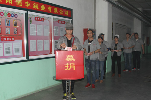 一方有难,八方支援。2017年3月22日恒丰公司并线甲班值车工聂秋云忽感觉身体不适到医院检查,结果为乳腺癌症,需立即手术。在其住院期间其丈夫脑血栓复发昏迷(五年前因脑血栓已丧失劳动能力),其儿子郭树超就读于曲阜师范大学(大一),之前因经济困难没有加入农村合作医疗及其他保险。现因聂秋云患病整个家庭没有任何经济收入,无法负担高额治疗费用。消息传来,公司领导研究决定,由公司工会向全体职工发出“爱心捐款倡议书”,立即得到了全体干部职工的积极响应,纷纷伸出援助之手,积极参加到这次“献爱心捐款”活动中来,点滴汇聚,爱心汪洋,无私助人,温暖真情。短短一上午的募捐,共募集到26624元人民币(另外,前期恒丰公司员工自发募捐9680元)。