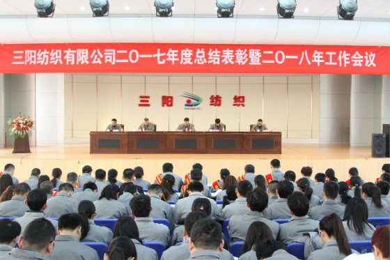 2月9日,三阳纺织有限公司二〇一七年度总结表彰暨二〇一八年工作会议在公司文化中心二楼多功能厅隆重召开,公司董事长兼总经理张尧宗发表重要讲话,副总经理刘虎城主持会议,副总经理孟刚宣读表彰决定并在主席台就坐。在主席台就坐的公司领导还有:公司副总经理李大松、公司副总经理徐西国。公司中基层管理人员、部分职工代表、企业标兵、先进个人、优秀管理者、先进集体代表共776人参加了会议。