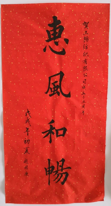 5月17日,三阳公司迎来了成立十五周年厂庆。十五年来,三阳公司全体员工在公司经理层领导下,全面落实集团的各项决议和部署,积极践行集团“人和、无私、自主、自觉”的核心价值观,紧紧围绕集团制定的“打造国内领先的高端纺织产业基地”的发展目标,紧密结合公司和市场两个实际,突出抓好生产和经营两大主题,推进管理创新、机制创新和文化创新,强化节能降耗、安全、环保、现场、劳动纪律、质量、成本管理,优化运行机制,提升运行绩效,推动产业升级,加强对外合作,推进项目开发,打造出了专业、高效的管理团队、经营团队、技术团队、员工团队,保障了人员稳定、生产稳定高效安全运行、经营有序高效推进,实现了三阳公司的全面、良性、科学、领先发展,跨入了健康快速、可持续发展的新境界。经过十五年的快速发展,三阳公司现已发展成为中国纯棉高支漂白纱线精品基地、高档面料生产基地、国内最大专业股线生产基地,是色织、丝光棉用纱方案专业解决商,公司连续多年进入中国棉纺织行业二十强,公司产品先后获得了“中国名牌”、“中国棉纺织行业最具影响力品牌”、“山东名牌”等荣誉称号,“三旸”商标被认定为“山东省著名商标”和“中国驰名商标”。