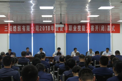 6月15日上午8:30,三阳纺织有限公司2018年度夏季职业技能大赛开幕式在公司办公楼三楼会议室举行。县总工会党组书记、常务副主席黄昕,县人力资源和社会保障局副局长韩敬华,县总工会副主席薄其福应邀出席开幕式并在主席台就坐。公司董事长兼总经理张尧宗为开幕式致词,副总经理、工会主席李小兵主持开幕式。在主席台就坐的公司领导还有公司副总经理、总工程师李大松,公司副总经理徐西国。来自各公司、部门的80名员工参加了开幕式。