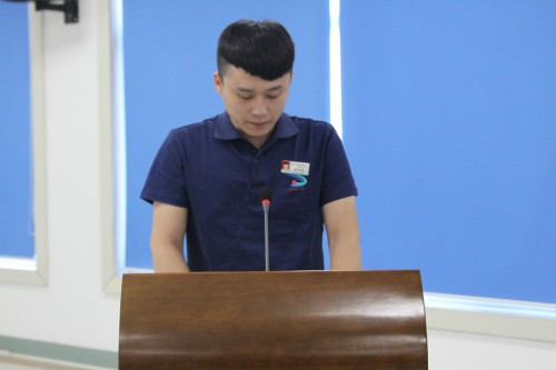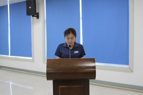 按照开幕式议程,裁判员代表精纺一车间庞丽丽、参赛选手代表精纺二车间陈仕蒙分别作了表态发言。