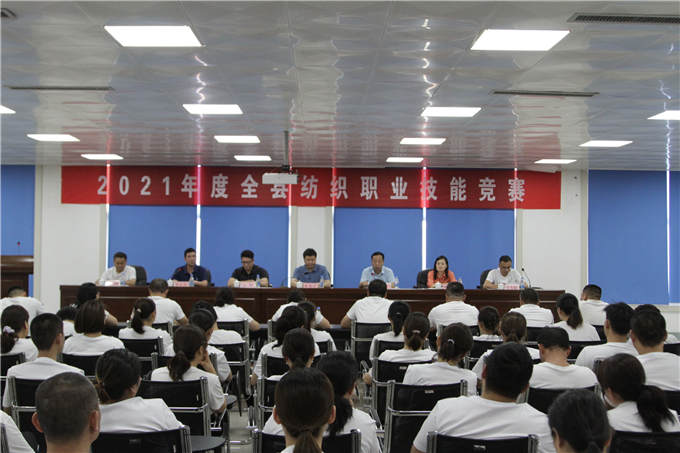 6月16日下午,由利津县总工会、利津县人力资源和社会保障局主办,三阳纺织有限公司承办的2021年度全县纺织职业技能大赛开幕式在公司办公楼三楼会议室隆重举行。利津县总工会党组书记、常务副主席黄昕,县社保中心副主任纪辉,利津县总工会副主席陈荣花,公司董事长兼总经理张尧宗,公司副总经理、总工程师李大松、公司副总经理徐西国出席开幕式并在主席台就坐。开幕式由公司副总经理兼工会主席李小兵主持。